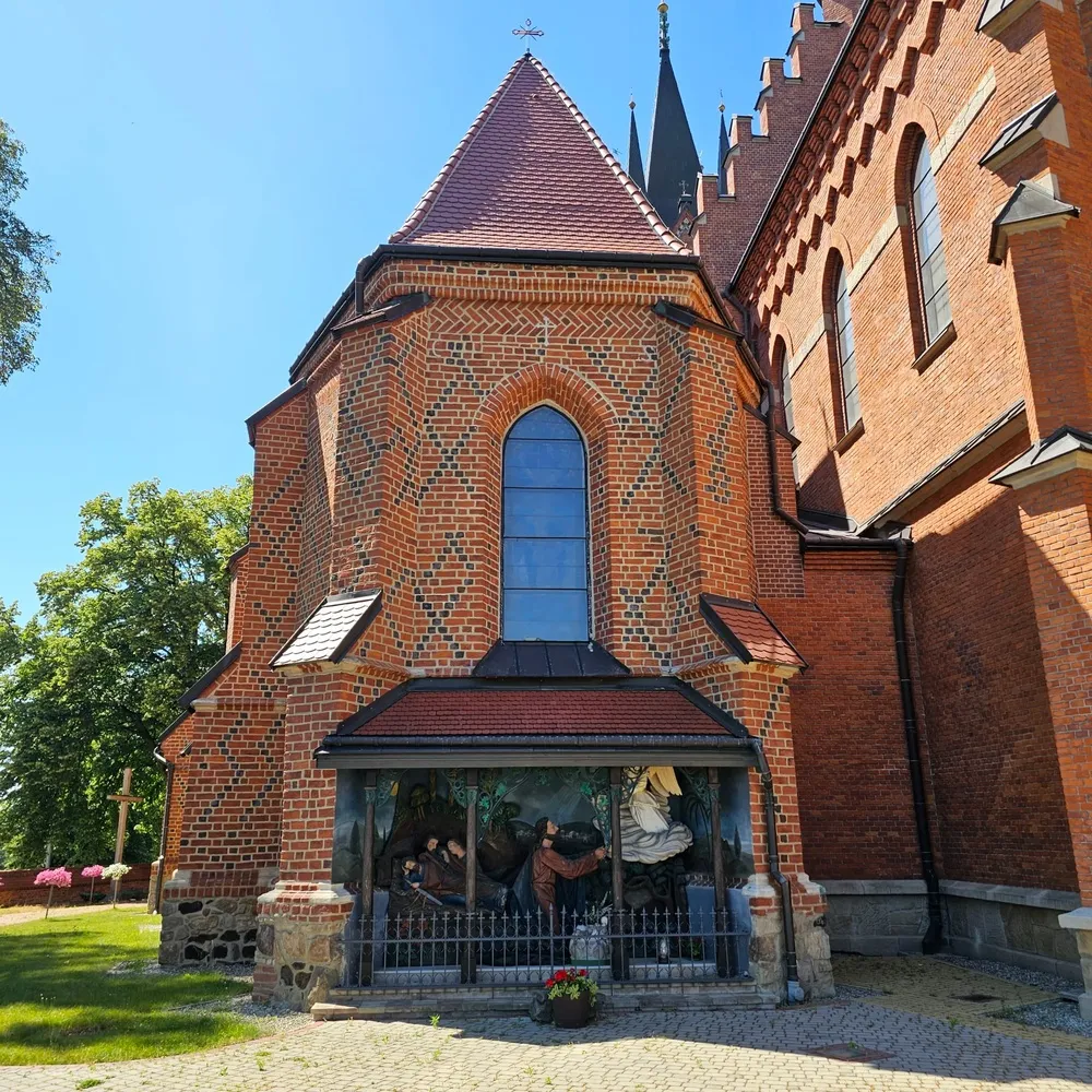- Nowa część bazyliki reprezentuje styl neogotycki, jest murowana i nietynkowana.