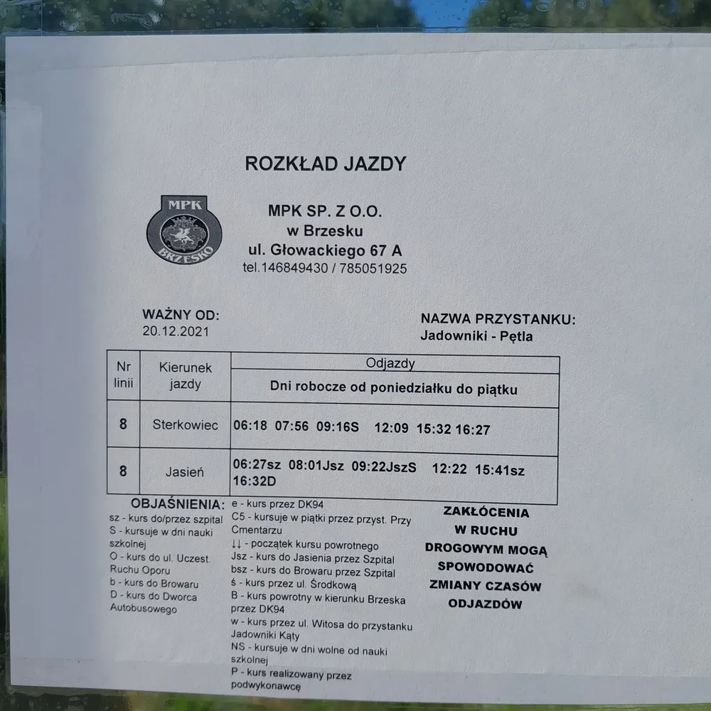 Brzesko DA-             06:27 06:31DH(MJ) 07:26D(MJ) 08:01  08:32D(MJ) 09:22S  09:36D(MJ) 11:26D(MJ) 12:16D(MJ) 12:22 13:41D(MJ) 14:41D(MJ)15:41 15:46D(MJ) 16:32