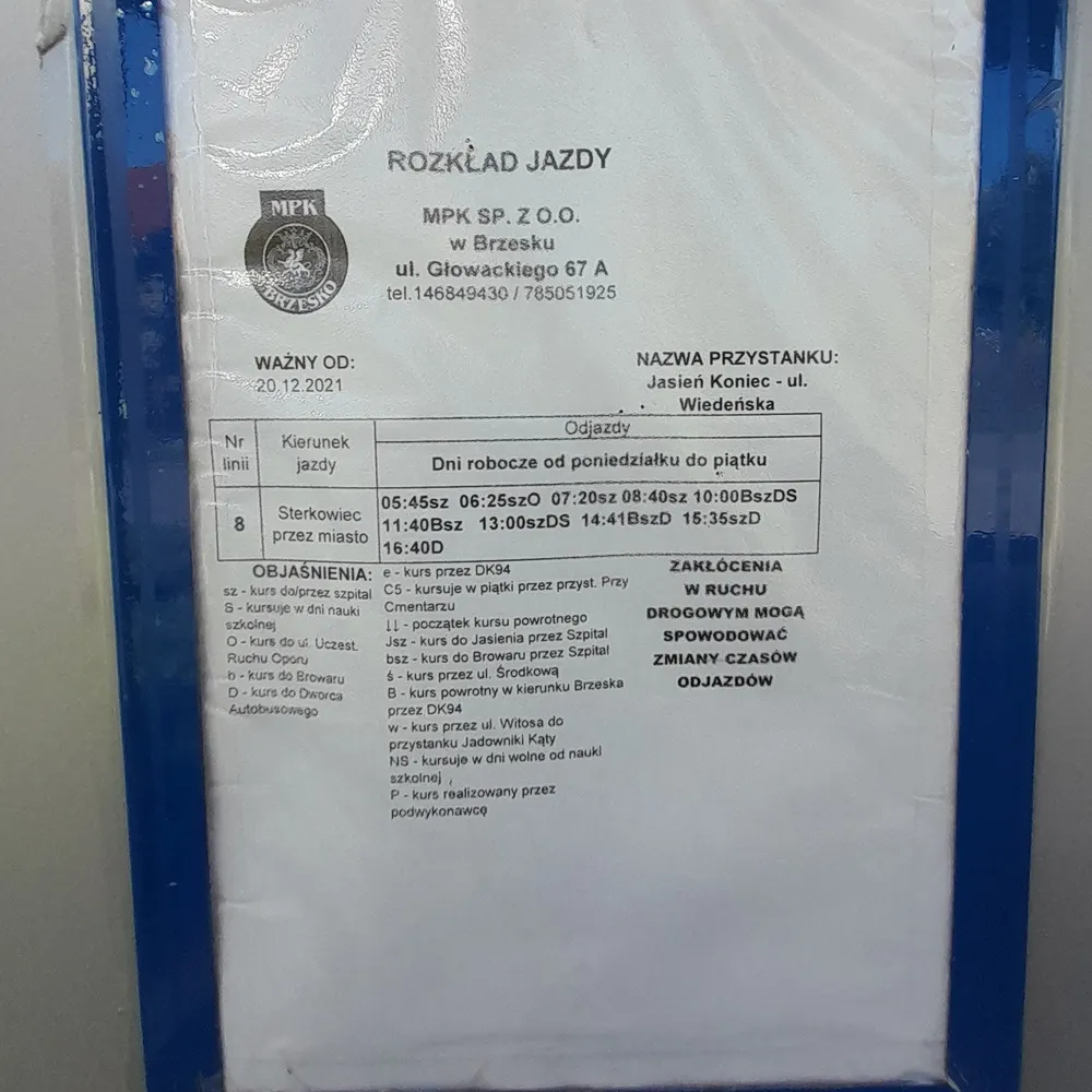Brzesko Centrum- 05:45 06:25 07:20 08:40 10:00S 11:40 13:00S 14:41 15:35 16:40