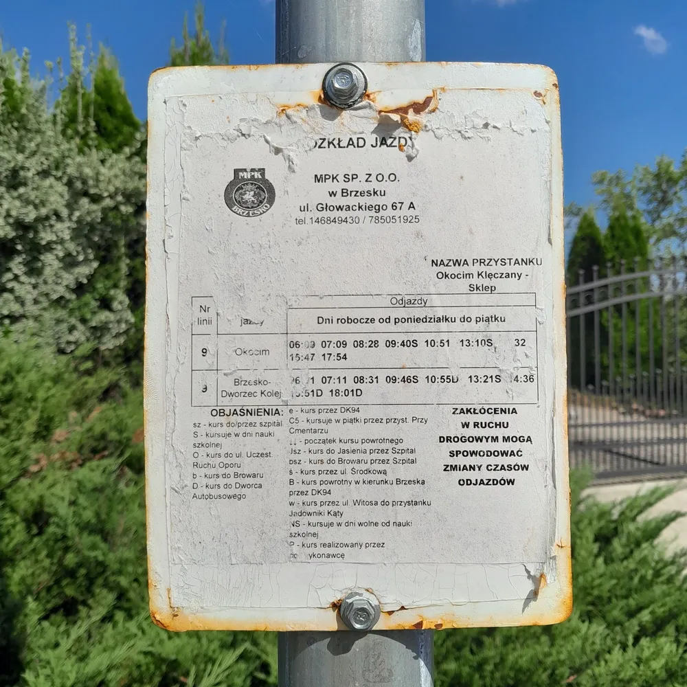 Brzesko PKP- 06:11(9) 07:11(9) 08:31(9) 09:46S(9) 13:21S(9) 14:36(9)