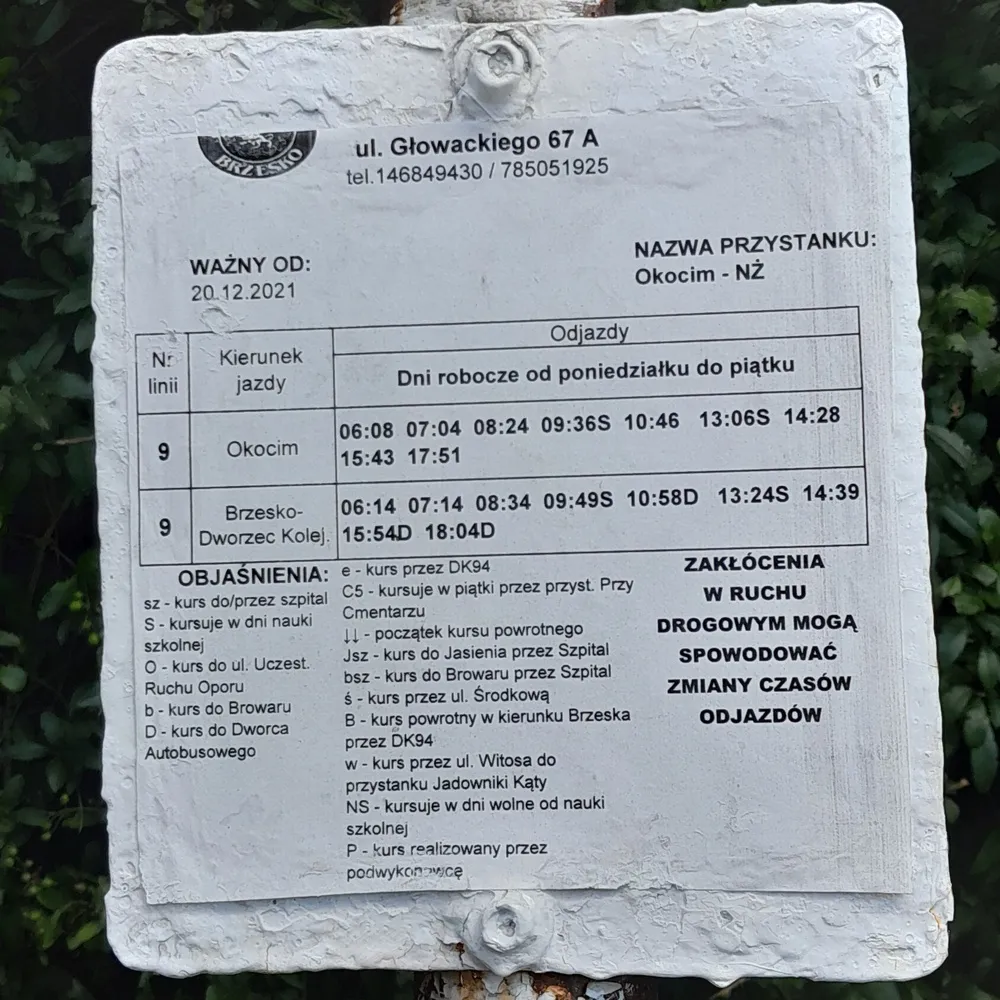 Brzesko Centrum- 06:14 07:14 08:34 09:49S 10:58 13:24S 14:39 15:54 18:04