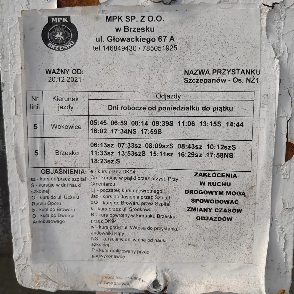 Brzesko DA- 06:13 06:37DH(MJ) 08:13DH(MJ) 08:43 09:45DH(MJ) 10:12S 11:33 11:50DH(MJ) 13:40DH(MJ)13:53S 15:11 15:35DH(MJ) 16:29 16:47DH(MJ)17:58NS 18:22DH(MJ) 18:23S